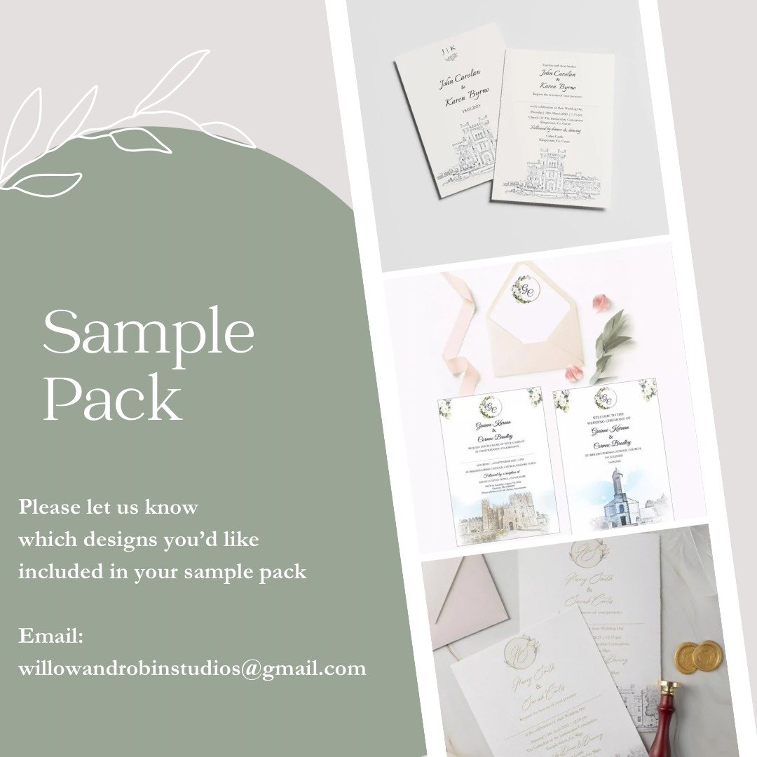 A wedding sample pack can include up to three designs. A sample pack is great to show you the type of linen card we use and to see the designs in person. Please select the three design styles that you’d like to include in your wedding sample pack.