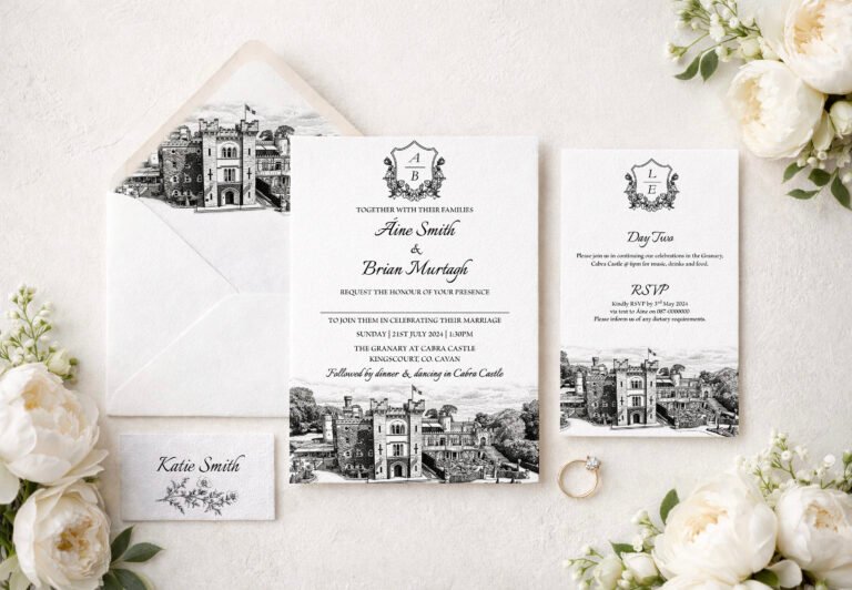 Classic Cabra Castle Black Tie Gatefold Wedding Invitation