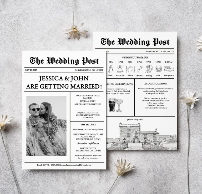 Cherry Blossom Bellingham Castle Wedding Invitation