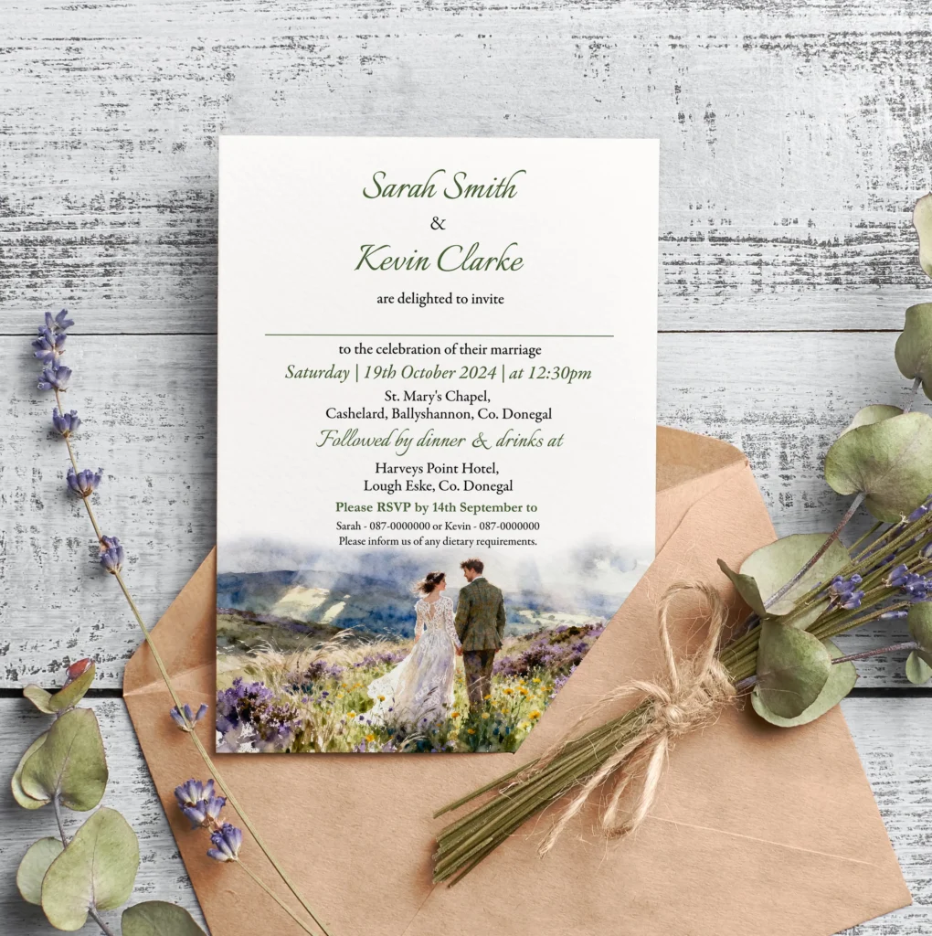 Watercolour Green Floral Lyrath Estate Wedding Invitations