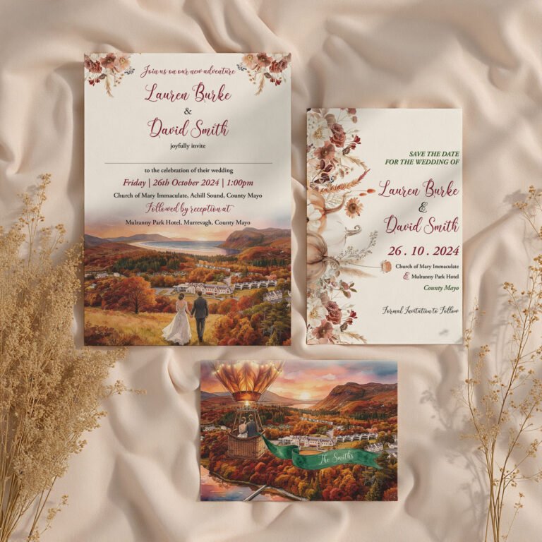 Autumnal Hot Air Balloon Wedding Invitation Set